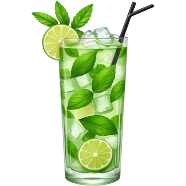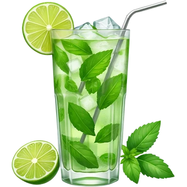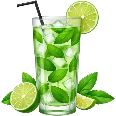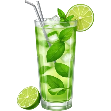 Mojito – tall glass with lime, mint leaves, and ice emoji | AI Emoji Generator