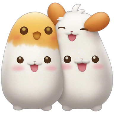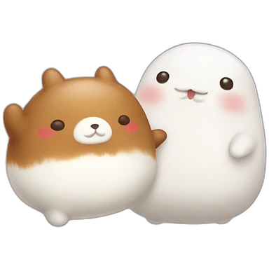 Fluffy round animal with cute little feet and button face and small ears like a molang character emoji