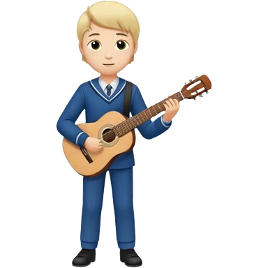 Teen boy – wearing school uniform, holding classical guitar, practicing chords. full body emoji
