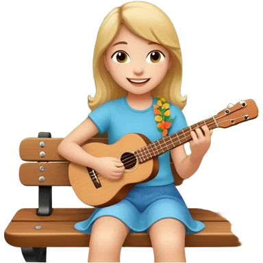 Teen girl – relaxed on park bench, strumming a ukulele, smiling. emoji