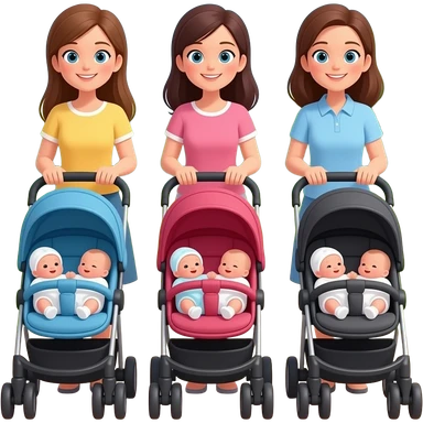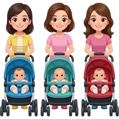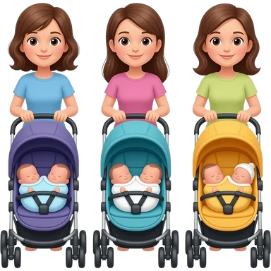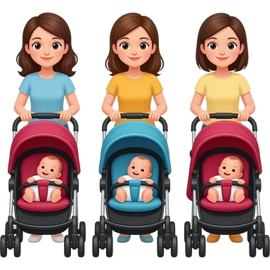 3 mothers pushing strollers with newborns emoji