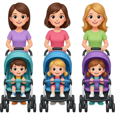 3 mothers pushing strollers with kids emoji