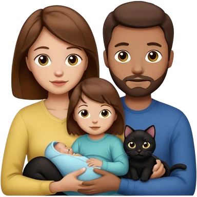 1 mom brown hair, 1 dad, 1 baby and 1 black cat emoji