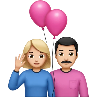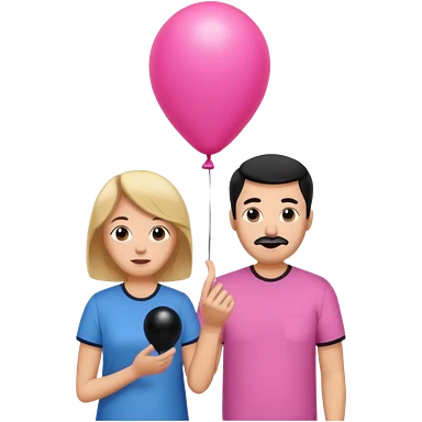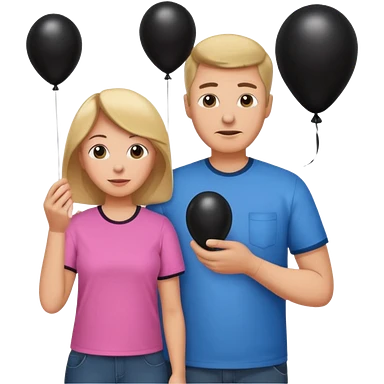 Mom in pink shirt dad in blue shirt holding 1 baloon black emoji | AI Emoji Generator