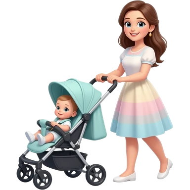 Mom pushing stroller. Blonde hair ponytail In bike shorts sneakers with ankle socks and tanktop. White sneakers emoji