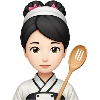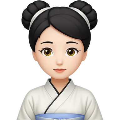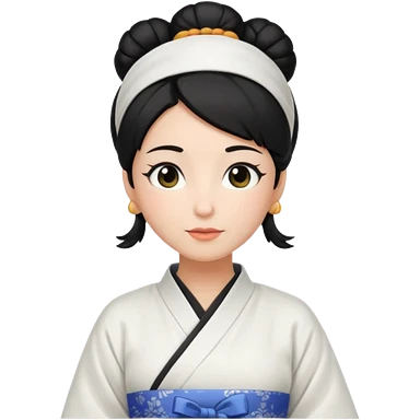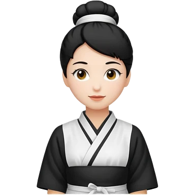 mom with black bun wearing white home kimono and white apron emoji | AI Emoji Generator