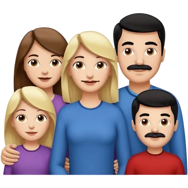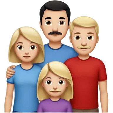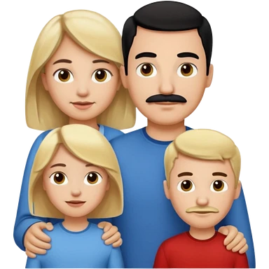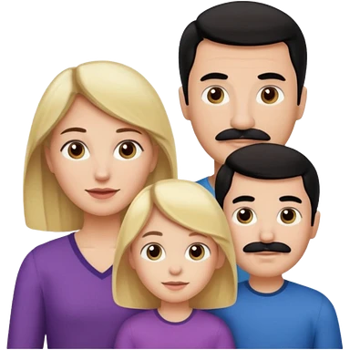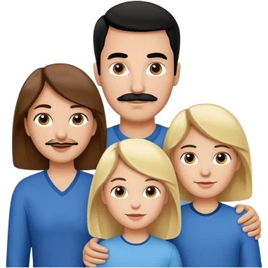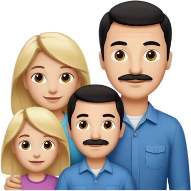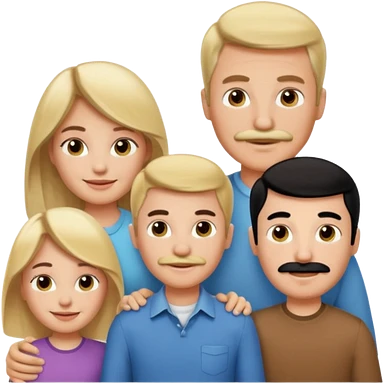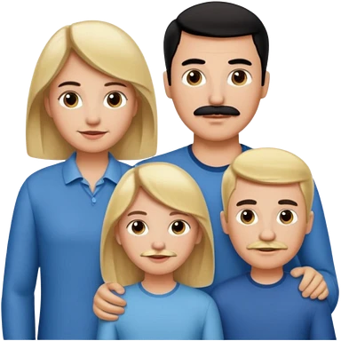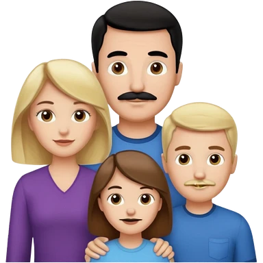 Mom with brown hair. Dad with black hair and mustache. 2 sons with blonde hair. 1 daughter with blonde hair. emoji | AI Emoji Generator
