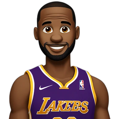 Happy smiling LeBron James in Lakers jersey with beard emoji