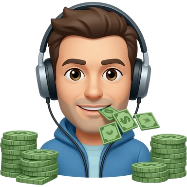 Money mouth face with headphones and a crown on emoji