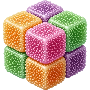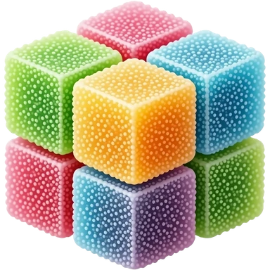 aesthetic gummy candy emoji, colorful cube jelly candies, sugar coated texture, minimal clean design, centered composition emoji