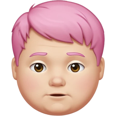 un nene blanco rellenito con pelo corto rosa, con la sonrisa para abajo emoji
