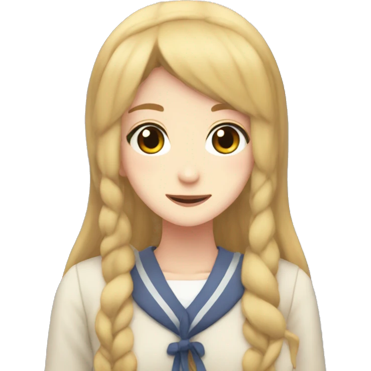 Monika from Doki Doki Literature Club, long corral-brown hair, green eyes, ponytail hair emoji