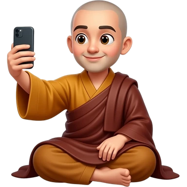 Monk sitting taking selfie emoji