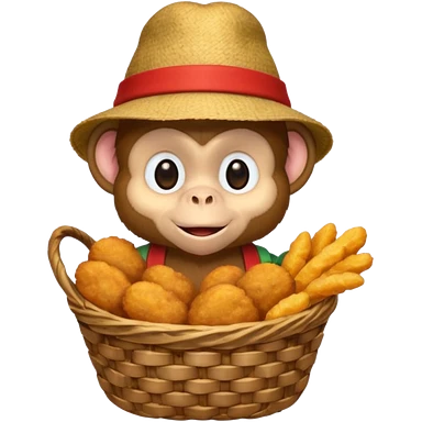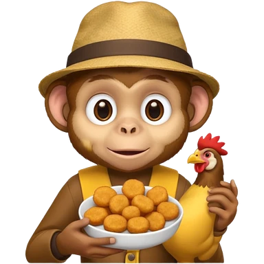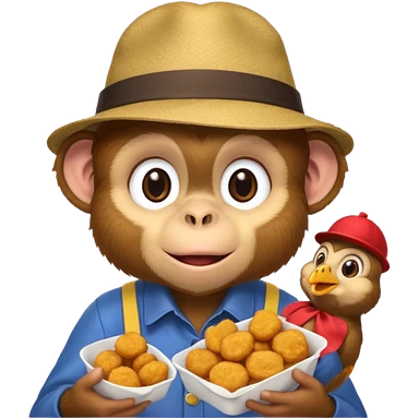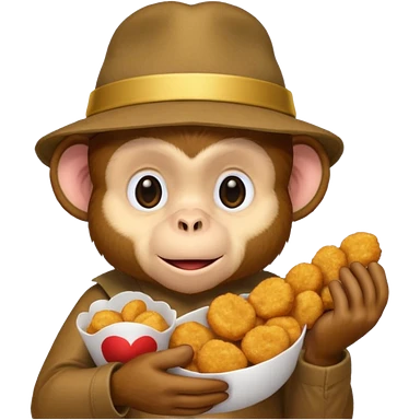 Monkey with a hat and chicken nuggets emoji