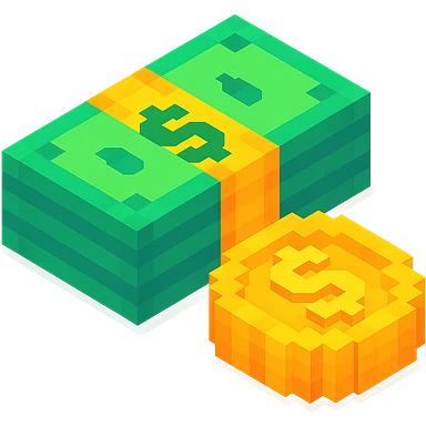 A grizzly bear with a chain and a money gun, voxel style, facing right emoji