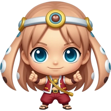 Sun God Nika from One Piece, bright and cheerful, simple facial features, golden hair, wide smile, energetic pose emoji