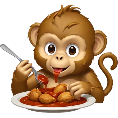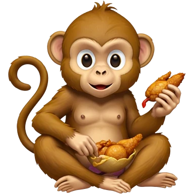 Monkey eating watermelon and a bowl of fried chicken emoji