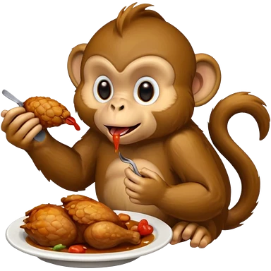 Monkey in a business suit with a top hat eating chicken drumstick emoji