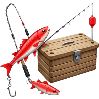 husband holding fishing rod with red fishing line hooked tuna emoji