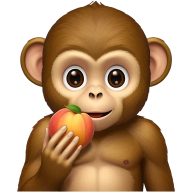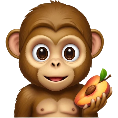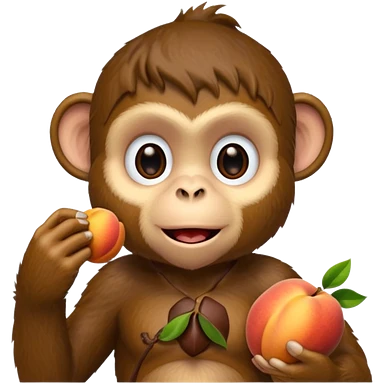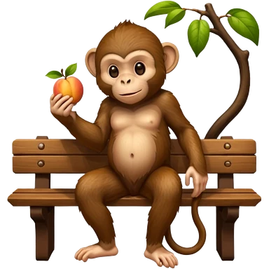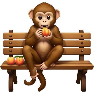 monkey sitting on a bench and eating peach and chocolate emoji