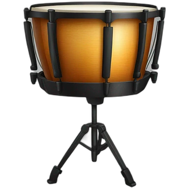 Create a professional, emblem-like emoji representing percussion instruments, including both traditional and folk drums. Feature a snare drum, bass drum, timpani, cymbals, marimba, tambourine, djembe, bongos, cajón, triangle, castanets, and ratchets in a balanced, heraldic composition. Crossed drumsticks at the center symbolize rhythm, while a ribbon of musical notes weaves around the instruments. Use rich gold, mahogany, and silver tones with polished highlights. Add laurel wreaths and subtle engravings for a grand, festive feel. The design should be harmonious, visually complete, and on a transparent background. emoji