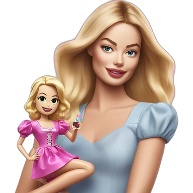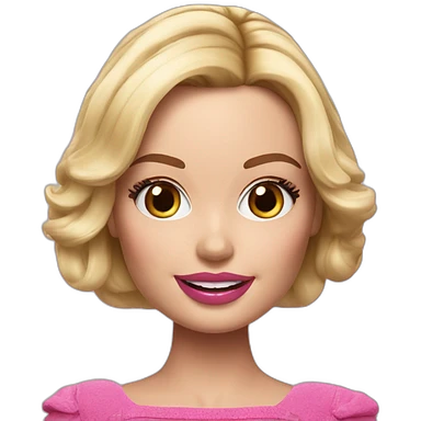 An image of a Barbie doll wearing a stylish outfit with the word 'Barbie' written across the clothing, set in a fun, vibrant background emoji