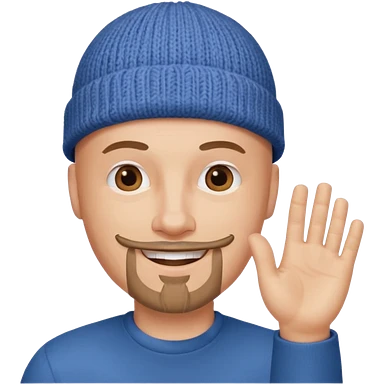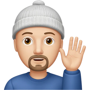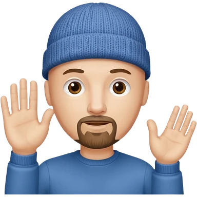 White bald with goatee hand raised knit cap emoji