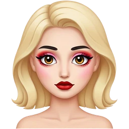 A girl who is smiling on one side and frowning on the other. On the side that is frowning, her hair and clothing is made of green money, and her eyelashes are made of dollar signs. On the side that is smiling, she has beautiful hair, makeup, clothes and jewelry on. emoji