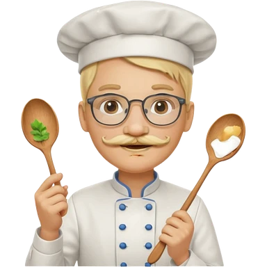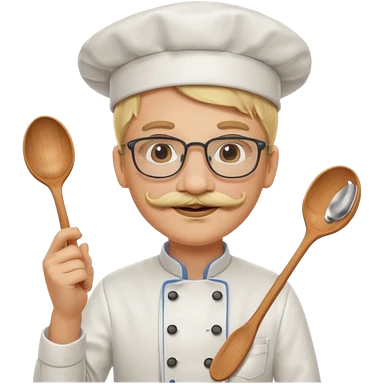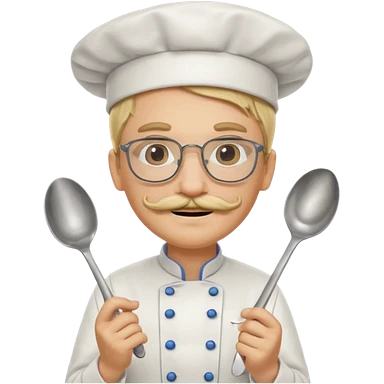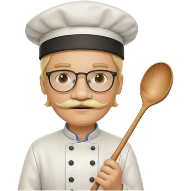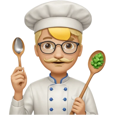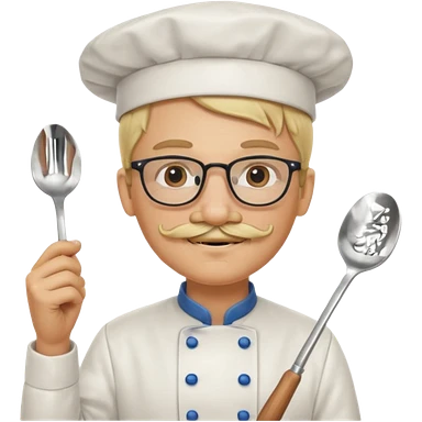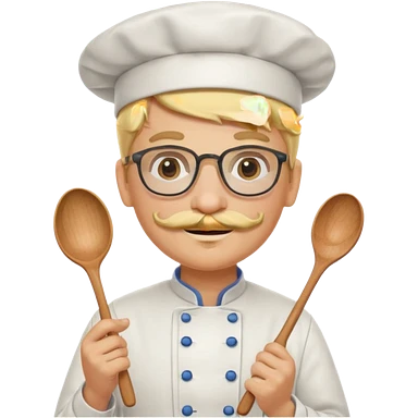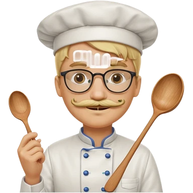 chef with spoon, blonde, with mustace, wearing glasses emoji