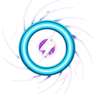futuristic minimalistic logo icon, abstract glowing storm swirl made of neon purple (#8B5CF6) and cyan (#00E0FF) lines, representing Storm team energy and speed, digital lightning core, dark background, no face, tech-style emblem, 1:1 aspect ratio emoji