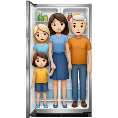Mono line pencil-drawn stick figure mom, dad, son, and daughter in child’s refrigerator artwork style emoji