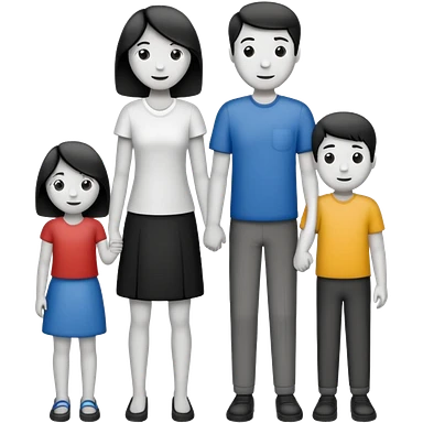 Mono line pencil-drawn stick figure mom, dad, son, and daughter emoji