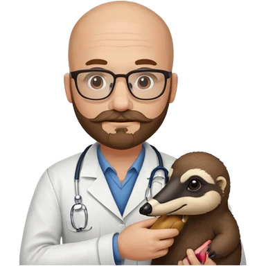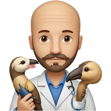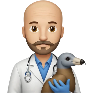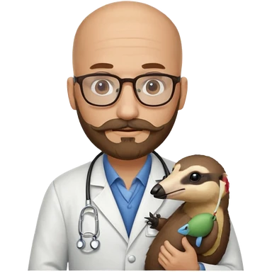 A bald veterinarian with a beard and mustache holding an anteater emoji