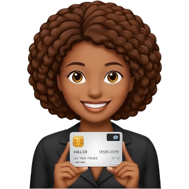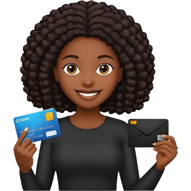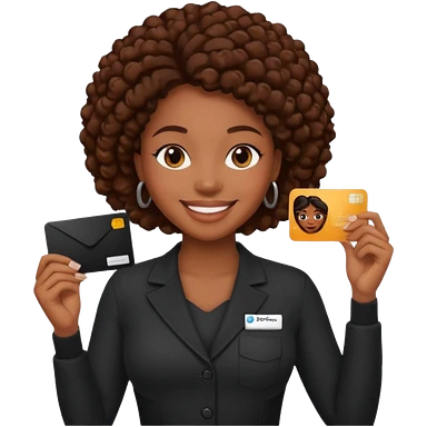 Black company card with black woman photo on it emoji