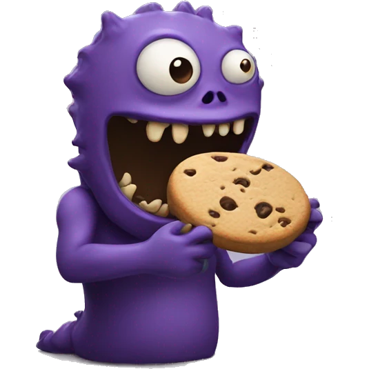 Rounded face emoji of Cookie Monster eating a chocolate chips cookie emoji