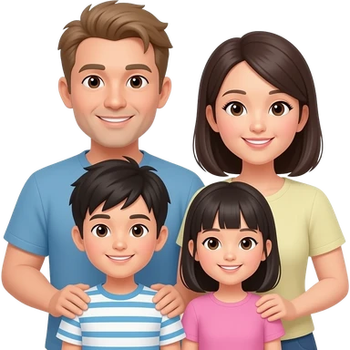 Asian Family of 4 (Dad w/ sandy hair, Mom, Son, Daughter) emoji