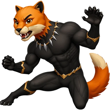A black panther but it is killing orange colored fox emoji