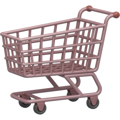 Carrinho de mercado cheio de compras femininas, com diversas maquiagens, roupas emoji