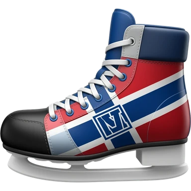 Montréal Hockey team's shoes in blue strap and red and white strap on the shoes emoji | AI Emoji Generator