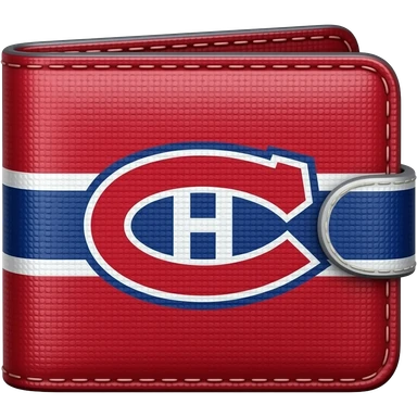 Montréal Hockey team's Man's wallet with with the Montréal Hockey team's player on it put the wallet in red and white blue straps on to it emoji