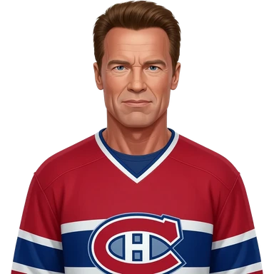 Arnold Schwarzenegger dress up as a Montréal Hockey team's shirt emoji