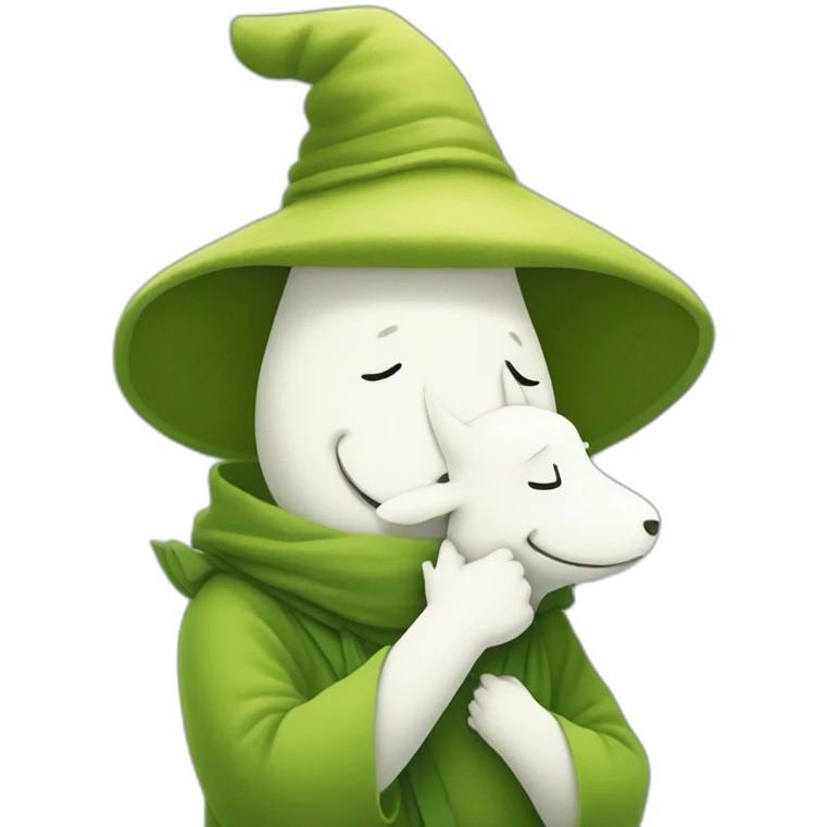 Moomintroll hugging snufkin emoji | AI Emoji Generator