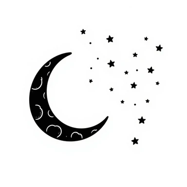 A person with closed eyes sleeping peacefully with a small crescent moon nearby. Warm, calming colors with blues and purples. Simple hand-drawn doodle style. emoji