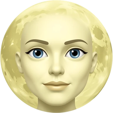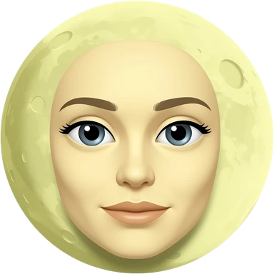 moon emoji with a feminem. Offwhite yellow. round craters for the moons serface emoji