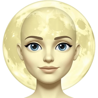 moon emoji with a FEMALE FACE. Offwhite yellow. round craters for the moons serface emoji