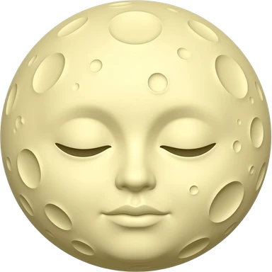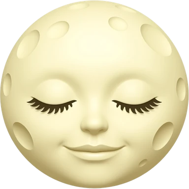 sleeping moon emoji with a FEMALE FACE. Offwhite yellow. round craters for the moons serface emoji