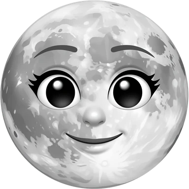 planet Moon with a cartoon kind face with big feminine eyes emoji