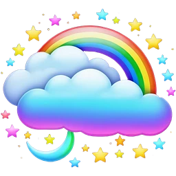 Create an emoji depicting a mystical cloud floating in a night sky, softly glowing with the light of the moon. Tiny, cute stars twinkle around the cloud, and the entire scene is surrounded by an aura of calm and mystery emoji