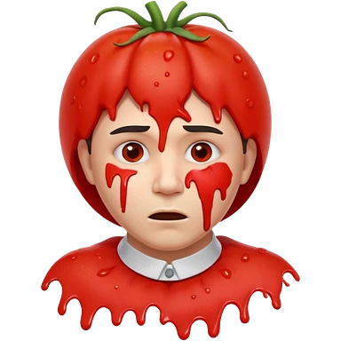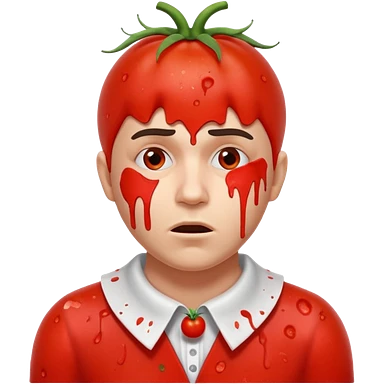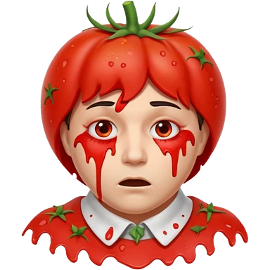 failed stage performer portrait, head and shoulders only, tomato splatters on face, embarrassed expression, torn theater costume collar, dramatic stage makeup, comedy tragedy vibe, 3D cartoon, mobile game icon style, clean background, no text, no watermark emoji