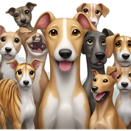 Fawn tiger greyhound in front of group of friends emoji